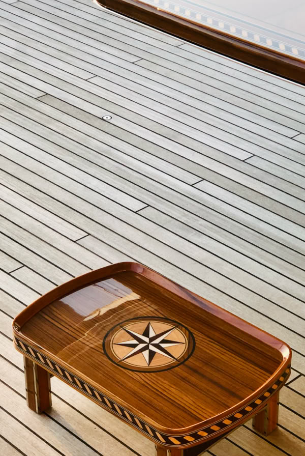 The « RACO » Collection was born from a desire to push the boundaries of luxury yacht design. Conceived to furnish one of the world’s longest sail yachts, the collection is a study in comfort and refinement. Every detail, from the choice of materials to the craftsmanship involved, reflects a commitment to creating pieces that are not only beautiful but also functional. The « RACO » chairs, for example, are designed to provide maximum comfort while maintaining a sleek, elegant profile. The collection is a celebration of the art of living, where form and function come together to create spaces that are as comfortable as they are luxurious.